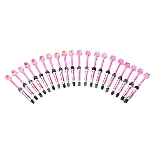 این کامپوزیت در طیف گسترده ای از سایه ها، از جمله سایه های A، B، C و همچنین سایه های سفید کننده موجود است. سایه های A نشان دهنده سایه های روشن تر و شفاف تر هستند که معمولاً برای ترمیم های قدامی یا دندان هایی با رنگ پایین تر استفاده می شوند. سایه های B کمی تیره تر هستند و رنگ بالاتری را ارائه می دهند و برای ترمیم های خلفی یا دندان هایی با شدت رنگ بالاتر مناسب هستند. سایه های C معمولاً برای تکنیک های چند لایه استفاده می شوند و توانایی ایجاد عمق و تفاوت های طبیعی در ترمیم را فراهم می کنند. حرف A طیف قرمز مایل به قهوه ای، B طیف زرد مایل به قرمز، C رنگهای خاکستری و D خاکستری مایل به قرمز را دارند. به عنوان مثال رنگ A1 روشن ترین رنگ قرمز مایل به قهوه ای در طیف رنگ های دندانی می باشد.