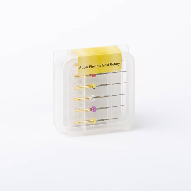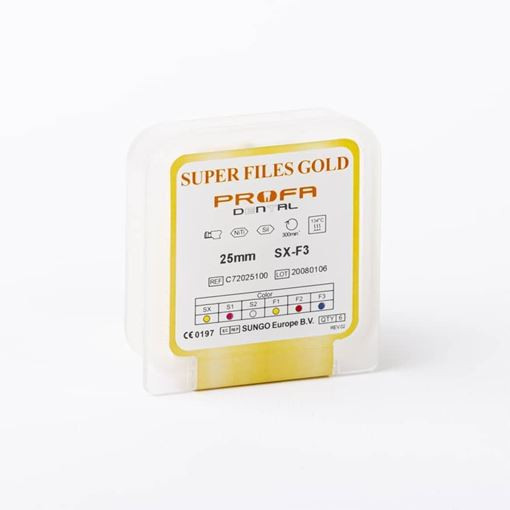 فایل روتاری یکی از مهمترین لوازم اندو برای انجام روت کانال یعنی پاکسازی کانال ریشه استفاده می شود. این فایل ها از جنس نیکل تیتانیوم تهیه می شوند و توسط موتور قابل استفاده هستند. فایل روتاری طلایی پروفا که محصول کشور چین است و در بسته بندی ۶ عددی موجود می باشد. برای استفاده از این فایل ها ابتدا دندان حاوی کانال ریشه را تخریب و بستر مناسبی فراهم کرده سپس فایل را وارد کانال کرده و با حرکات چرخشی به طور جداگانه وارد کانال ریشه می شود. این فرایند تکرار می شود تا فایل در کل طول کانال حرکت کند و آن را تمیز کند. تمامی قسمت های کانال ریشه را به طور دقیق پاکسازی کرده تا از باکتری ها و عفونت ها جلوگیری شود. با استفاده از Gold Rotary File دسترسی به کانال ریشه دندان سهولت یافته، سرعت و دقت بیشتری در انجام روت کانال انجام می شود. این محصول برند Profa در طول ۲۵ میلی متر و سایزهای SX ،S1 ،S2 F1 ،F2 ،F3 و آسورت موجود است.
