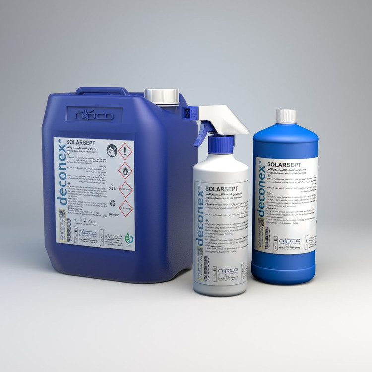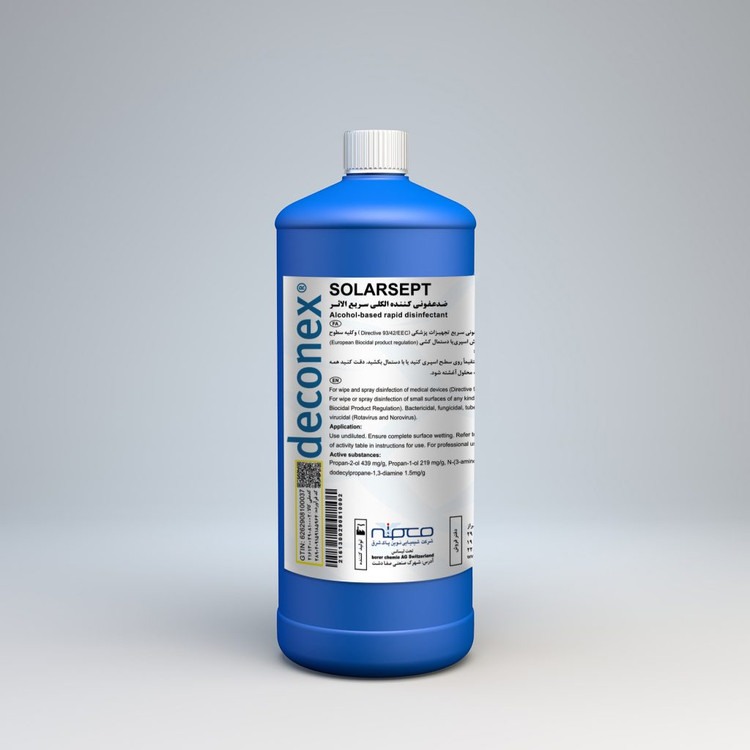 محلول ضدعفونی دکونکس ساخت شرکت نوین پاک شرق با نام سولارسپت شناخته می شود و بسیار مناسب برای ضدعفونی سریع سطوح و تجهیزات می باشد.