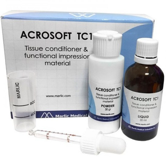 "آکریل مخصوص ریلاین نرم موقت" بر اساس کوپلیمر اتیل متاکریلات که پلیمری غیر حساسیت زاست و نرم کننده محلول در الکل طراحی شده است. نرمی ریلاین حاصل از این محصول موجب التیام آزردگیهای ناشی از تماس پروتزهای متحرک و لثه بیمار میگردد. ریلاین حاصل تا مدت ۱۵ روز نرمی خود را حفظ میکند.(البته آنچه بصورت تجربی بدست آمده است بیانگر مدت زمان خیلی طولانی تری است که بعضا سالیانه هم بوده است )