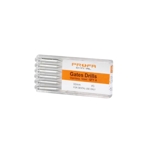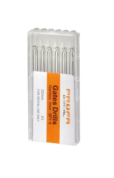 از گیتس دریل پروفا PROFA GATES DRILLS در دندانپزشکی برای درمان اندو استفاده می کنند. به عبارتی دیگر، در هنگام عصب کشی دندان برای باز یا گشاد کردن کانال دندان، از گیتس کمک می گیرند. این محصول بسیار تیز و برنده است، همچنین سرعت آن چیزی در حدود 800 الی 1200 دور در دقیقه می باشد. جنس این محصول از استیل ضد زنگ است و از مقاومت بالایی در برابر سایش برخوردار می باشد. GATES ابزاری بسیار تیز و پر سرعت است.