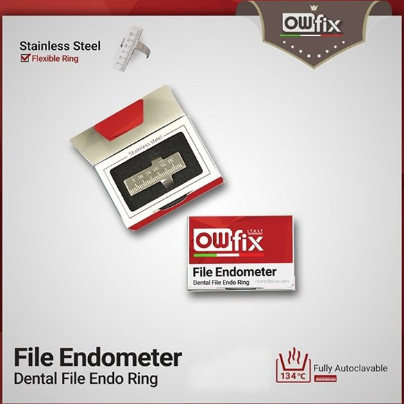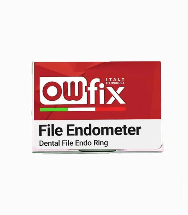 اندومتر Owfix یک ابزار پرکاربرد در دندانپزشکی است که برای اندازه گیری طول فایل و سایر موارد استفاده میشود اندازه اندومتر برحسب میلی متر است که در مواقعی که دندان نیاز به عصب کشی دارد از فایل روتاری و یا دستی برای آماده سازی کانال ریشه دندان استفاده میشود و پس از آن با بیرون آوردن فایل میتوان طول کانال را با اندومتر اندازه گیری کرد.