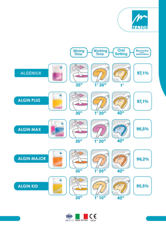آلژینات کروماتیک مدل Algin Kid از برند ایتالیایی ماژور در فروشگاه اینترنتی نیکی دنتال عرضه میشود.