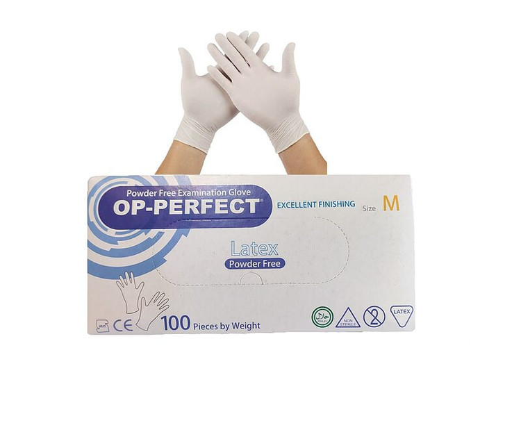 دستکش لاتکس پزشکی باید استریل و مقاوم باشد تا هنگام استفاده در عملهای جراحی میکروب و عفونت وارد بدن بیمار نشود. این دستکش یکبار مصرف بوده اما مقاومت و دوام بالایی دارند. از آنجایی که پزشکان از آنها به طور مداوم و چندین ساعت پشت هم استفاده میکنند باید مقاومت بالایی داشته باشند. سطح خارجی آنها طوری تولید میشود که هنگام خشک یا مرطوب بودن بتوانند به خوبی اشیا در دست نگهداری کنند و هنگام کار از دست سر نخورند. ویژگی دیگری که یک دستکش خوب باید داشته باشد قابلیت کشسانی بالاست. دستکش ها معمولا از جنس لاتکس یا وینیل هستند؛ لاتکس معمولا مقاومت خوبی نسبت به وینیل دارد. دستکش لاتکس بدون پودر اوپی پرفکت در برابر باز، اسید، آلودگی و حرارت مقاومت خوبی دارد. این محصول بیشتر در پزشکی و دندانپزشکی کاربرد دارد.