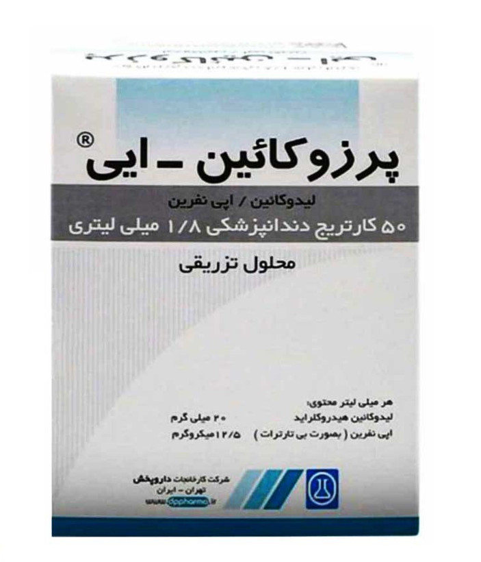 ماده بی حسی پرزوکائین شامل 12.5 میکروگرم اپی نفرین / 20 میلی گرم لیدوکائین هیدروکلراید در یک میلی لیتر است. پرزوکائین محصول شرکت دارویی داروپخش می باشد.